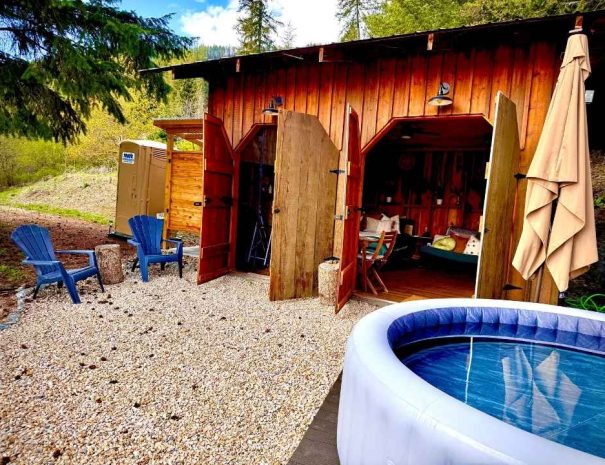 Enjoy the views of nature and the calm waters of White Lake while soothing in our inflatable unshared hot tub.